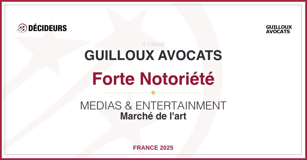Le cabinet Guilloux/Guesnier dispose d’une compétence juridique globale dépassant le seul cadre du droit des médias, de la culture, du droit du numérique et des nouvelles technologies, du droit de la presse, du droit de la propriété intellectuelle, littéraire et artistique et du droit de l’art et de la création pour couvrir le droit social, le droit des affaires et le droit des sociétés.